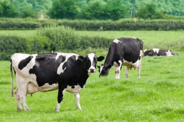 Cows grazing in a field.