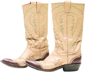 牛仔靴:一种有古巴高跟的足穹很高的靴子,通常有装饰性的缝线
