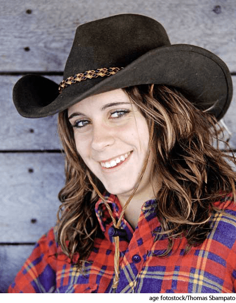 牛仔帽:一种高顶宽沿的毡帽 也作