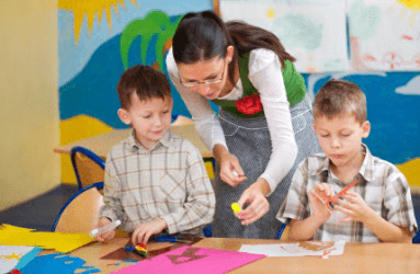 A teacher uses art to encourage students to be creative.