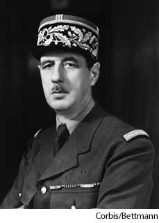 de Gaulle AHD[də gōlʹ, gôlʹ] Charles André Joseph Marie (1890-1970) D.J.[də ˈgəʊl, ˈgɔːl]K.K.[də ˈgol, ˈgɔl]NONE(无词性) Charles de Gaullephotographed c. 1942- French general and politician. During World War II he gained enormous popularity as the leader of Free French forces in exile. Later, after years of self-imposed retirement, he emerged as the first president (1959-1969) of the Fifth Republic and led the country through its turbulent withdrawal from Algeria.戴高乐,查尔斯·安德鲁·约瑟夫·玛丽:(1890-1970) 法国将军和政治家。第二次世界大战中,流亡的戴高乐领导了“自由法国运动”,因此赢得广泛的拥戴。后来经过多年自愿的隐居生活,他成为第五共和国的首任总统(1959-1969年),并率领他的国民从阿尔及利亚浩浩荡荡地撤退
