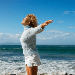 A woman delighted by the beautiful day.