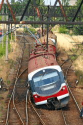 A train that has been derailed.