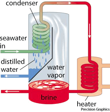 释义 de·sal·i·nate AHD[dē-sălʹə-nāt'] D.J.[diːˈsæləˌneɪt]K.K.[diˈsæləˌnet]v.tr.(及物动词)de.sal.i.nat.ed, de.sal.i.nat.ing, de.sal.i.nates desalinateschematic diagram of a flash-distillation process todesalinate seawater