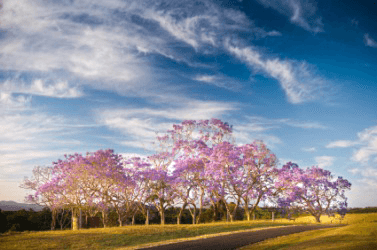 Clouds float above a group of trees.