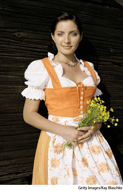 - German dialectal Dirndl [diminutive of] Dirne [girl] from Old High German diorna 德语方言 Dirndl Dirne的小后缀 [女孩] 源自 古高地德语 diorna