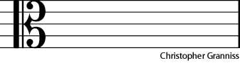 中音谱表:中音谱号C,其位置表示为五线谱底部起第三条线,代表中音C的音高标准