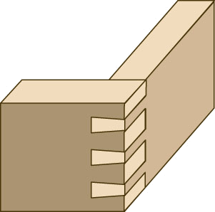 - A joint formed by interlocking one or more such tenons and mortises.鸽尾结合:被一个或多个榫连结在一起