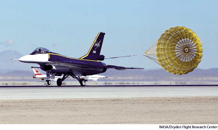 drogue parachuten.(名词) drogue parachuteattached to an F-16XLfighter jet- A parachute used to stabilize or decelerate a fast-moving object, especially a small parachute used to slow down a reentering spacecraft or satellite prior to deployment of the main parachute.刹车伞:用于使快速运动物体稳定或减速的降落伞,尤指航天器或卫星重新进入大气层时展开全降落伞之前,用以使航天器或卫星减速的小型降落伞