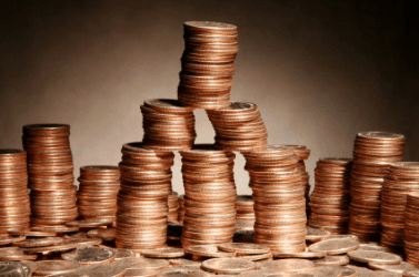 Quarters amassed into a pile.