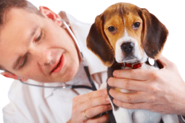 A puppy being checked by a Doctor of Veterinary Medicine.