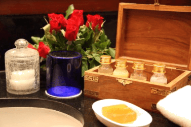 Several bathroom amenities