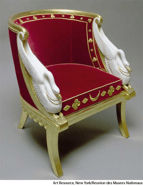 Em·pire AHD[ŏm-pîrʹ, ĕmʹpīr'] D.J.[ɒmˈpɪə, ˈemˌpaɪə]K.K.[ɑmˈpɪr, ˈɛmˌpaɪr]adj.(形容词) Empire1top: portrait of Désirée Clary (1777-1860), crowned Queen of Sweden in 1829, by François Gerard (1770-1837)bottom: c. 1804 chair from the boudoir of Josephine Bonaparte, from the shop of Georges Jacob (1739-1814) and his son François-Honoré-Georges Jacob-Desmalter (1770-1841) Empire1- Of, relating to, or characteristic of a neoclassic style, as in clothing or the decorative arts, prevalent in France during the first part of the 19th century.新古典风格的:新古典风格的、与其有关的或表现为之的,如在服装或装饰艺术上,在19世纪早期风行法国