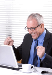 A man working with enthusiasm.