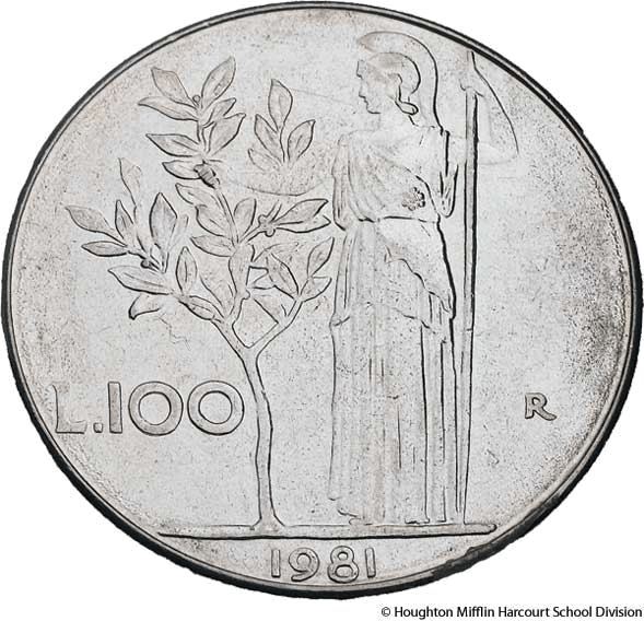 ex·ergue AHD[ĕkʹsûrg', ĕgʹzûrg'] D.J.[ˈekˌsɜːg, ˈegˌzɜːg]K.K.[ˈɛkˌsɝg, ˈɛgˌzɝg]n.(名词) exerguereverse of a 1981 Italian 100 lire coin depicting the goddess Minerva holding an olive tree- A space on the reverse of a coin or medal, usually below the central design and often giving the date and place of engraving.空白处:硬币或奖章背面空白处,一般在中心图案的下方并通常标有雕刻的时间和地点