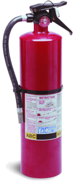 - Any of various portable mechanical devices for spraying and extinguishing a fire with chemicals.灭火器:一种用化学药品灭火的便携式机械装置