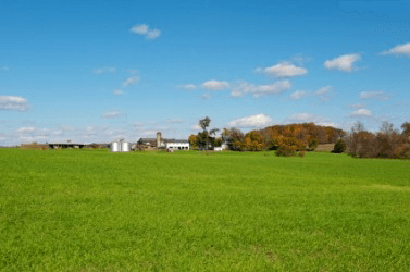 You can see a farmhouse far in the distance.