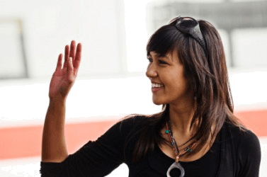 A woman says farewell.