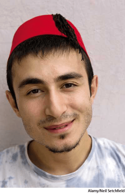 fez AHD[fĕz] D.J.[fez]K.K.[fɛz]n.(名词)【复数】 fez.zes  fez- A man's felt cap in the shape of a flat-topped cone, usually red with a black tassel hanging from the crown, worn chiefly in the eastern Mediterranean region.土耳其帽:一种通常为红色的、顶部有垂下的黑色流苏的、平顶的圆筒形男式毡帽,主要在地中海东部地区佩戴