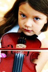 A little girl playing a fiddle.