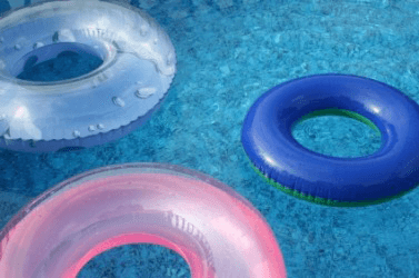 Three floating innertubes.