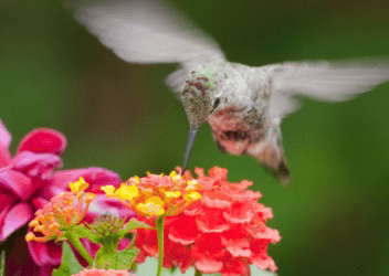 A hummingbird's wings flutter.