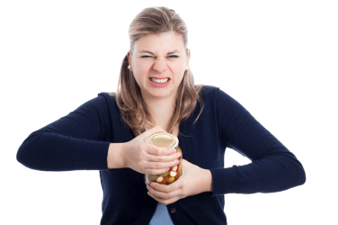 This woman is having to force open a jar.