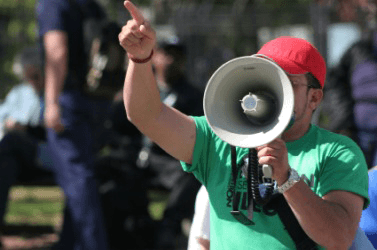 A man exercises his right to free speech.