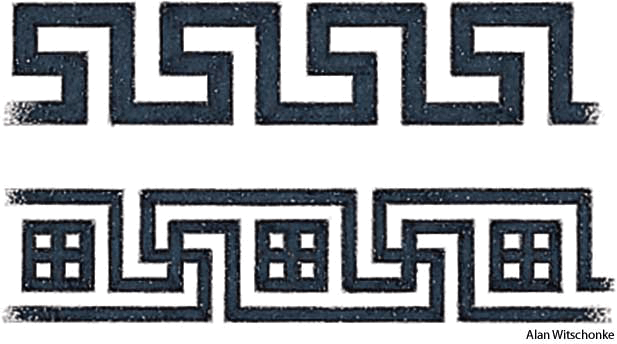 fret 3 AHD[frĕt] D.J.[fret]K.K.[frɛt]n.(名词) fret3fret designs- An ornamental design consisting of repeated and symmetrical figures, often in relief, contained within a band or border.回纹饰:一种带有重复性的、对称性图案的装饰性设计,常见于浮雕中的条饰或边沿