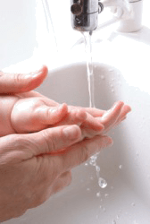 Gentle is how this mother washes her baby's hand.