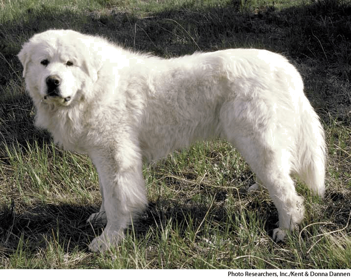 Any of a breed of large, heavy-boned dogs having a thick white coat and originally developed to guard sheep.