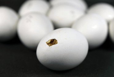 A baby bird about to hatch from its egg.