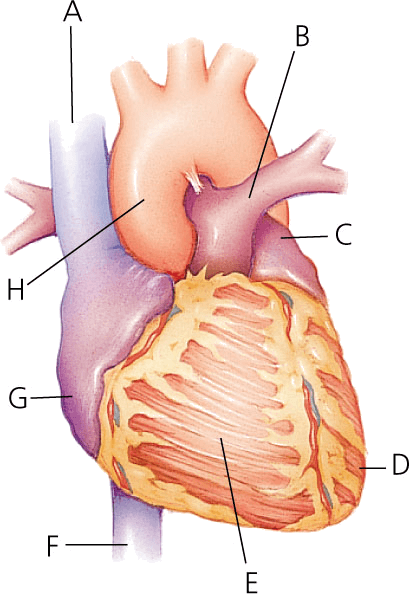 heart AHD[härt] D.J.[hɑːt]K.K.[hɑrt]n.(名词) A. superior vena cavaB. pulmonary aortaC. left atriumD. left ventricleE. right ventricleF. inferior vena cavaG. right atriumH. aortaCarlyn Iverson- Anatomy 【解剖学】