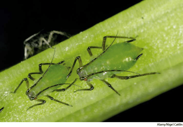 a·phid AHD[āʹfĭd, ăfʹĭd] D.J.[ˈeɪfɪd, ˈæfɪd]K.K.[ˈefɪd, ˈæfɪd]n.(名词) aphidvetch aphidsMegoura viciae- Any of various small, soft-bodied insects of the family Aphididae that have mouthparts specially adapted for piercing and feed by sucking sap from plants. Also called plant louse 蚜虫:一种蚜虫科软体小昆虫,其有特别适合刺入植物体内吸取汁液的口器 也作 plant louse