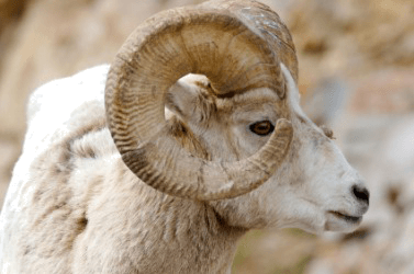 Curled horns on a sheep.