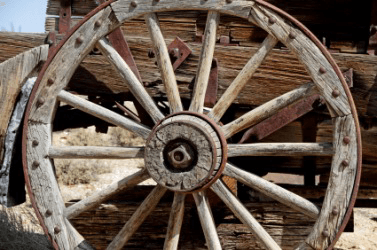 The hub of an old wagon wheel.