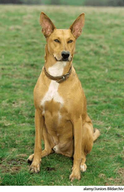 I·bi·zan hound AHD[ĭ-bēʹzən, -zän] D.J.[ɪˈbiːzən, -zɑːn]K.K.[ɪˈbizən, -zɑn]n.(名词) Ibizan hound- A swift, slender, medium-sized hunting dog, bred primarily in the Balearic Islands and having a short, solid, or spotted red and white or tawny coat.伊维萨猎犬:一种体形瘦长、行动敏捷、中等大小的猎犬。主要在阿利巴里群岛上驯养;有短而结实或带有红色、白色或黄褐色斑点的毛皮