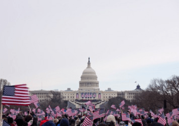 People waiting to see the inauguration of an American president.