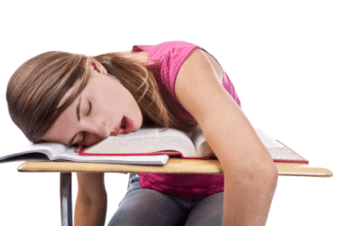 A girl lies inert on her desk.