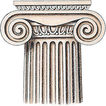 爱奥尼亚柱式:一种古希腊建筑工样,特征是柱头有两股相对的螺旋