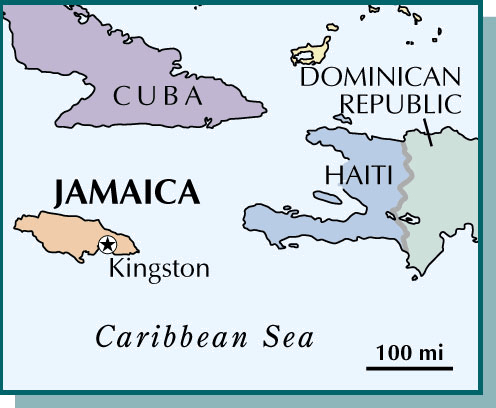 Ja·mai·ca AHD[jə-māʹkə] abbr.缩写 Jam.D.J.[dʒəˈmeɪkə]K.K.[dʒəˈmekə]NONE(无词性) - An island country in the Caribbean Sea south of Cuba. Discovered by Columbus in 1494, the island was settled in 1509 by the Spanish, captured by the British in 1655, and formally ceded to Great Britain in 1670. The country became independent in 1962. Kingston is the capital and the largest city. Population, 2,190,357.牙买加:古巴南部的一个岛国,位于加勒比海沿岸。1494年由哥伦布发现,1509年西班牙在此实施殖民统治,1655年英国占领并于1670年正式吞并该地。1962年该国独立。首都金斯敦是最大的城市。人口2,190,357