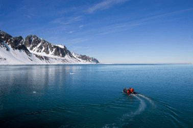 A boat travels the Arctic Ocean.