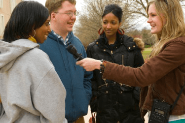 A journalist doing an interview.