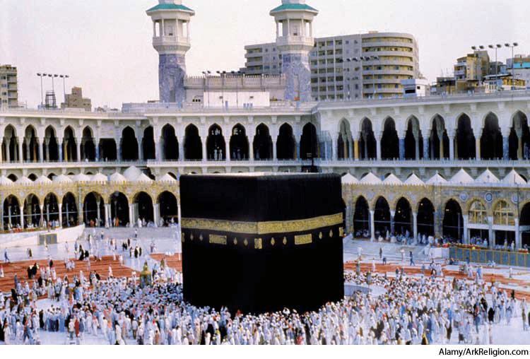 A Moslem shrine in Mecca toward which the faithful turn to pray.