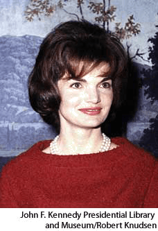 Kennedy, Jacqueline Lee Bouvier Former name of Jacqueline Kennedy Onassis.(Born 1929)NONE(无词性) Jacqueline Kennedyphotographed in 1961- First Lady of the United States (1961-1963) as the wife of President John F. Kennedy. She promoted the arts and supervised the redecoration of the White House. Since 1975 she has worked as an editor in New York.肯尼迪,雅克莱恩·李·布维尔:(生于 1929) 美国第一夫人(1961-1963年),约翰·F·肯尼迪的夫人,她推动了艺术的发展并指导重新装修白宫。1975年之后,她在纽约作编辑工作