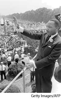 King, Martin Luther, Jr. (1929-1968)NONE(无词性) Martin Luther King, Jr.at the Lincoln Memorial, Washington, DC, during the March on WashingtonAugust 28, 1963- American cleric whose eloquence and commitment to nonviolent tactics formed the foundation of the civil rights movement of the 1950's and 1960's. Among the many peaceful demonstrations he led was the 1963 March on Washington, at which he delivered his "I have a dream" speech. He won the 1964 Nobel Peace Prize, four years before he was assassinated in Memphis, Tennessee.金,小马丁·路德:(1929-1968) 美国牧师。他对非暴力策略的雄辩和信奉导致了20世纪50年代和60年代民权运动的形成。在他领导的众多和平示威中包括1963年的向华盛顿进军,此中他发布了“我有一个梦想”的演说。1964年他获诺贝尔和平奖,四年后被暗杀于田纳西州的孟菲斯
