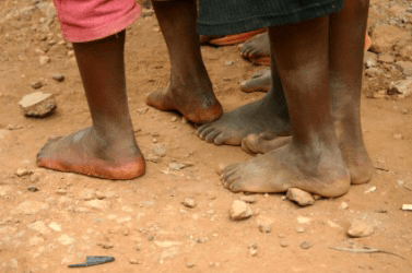 These poor children lack shoes.