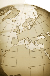 The lines of latitude marked on globe.