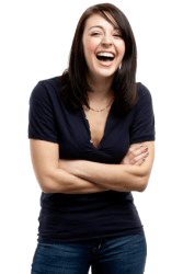 Something has made this woman laugh.