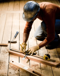 A man measures lumber for a deck.